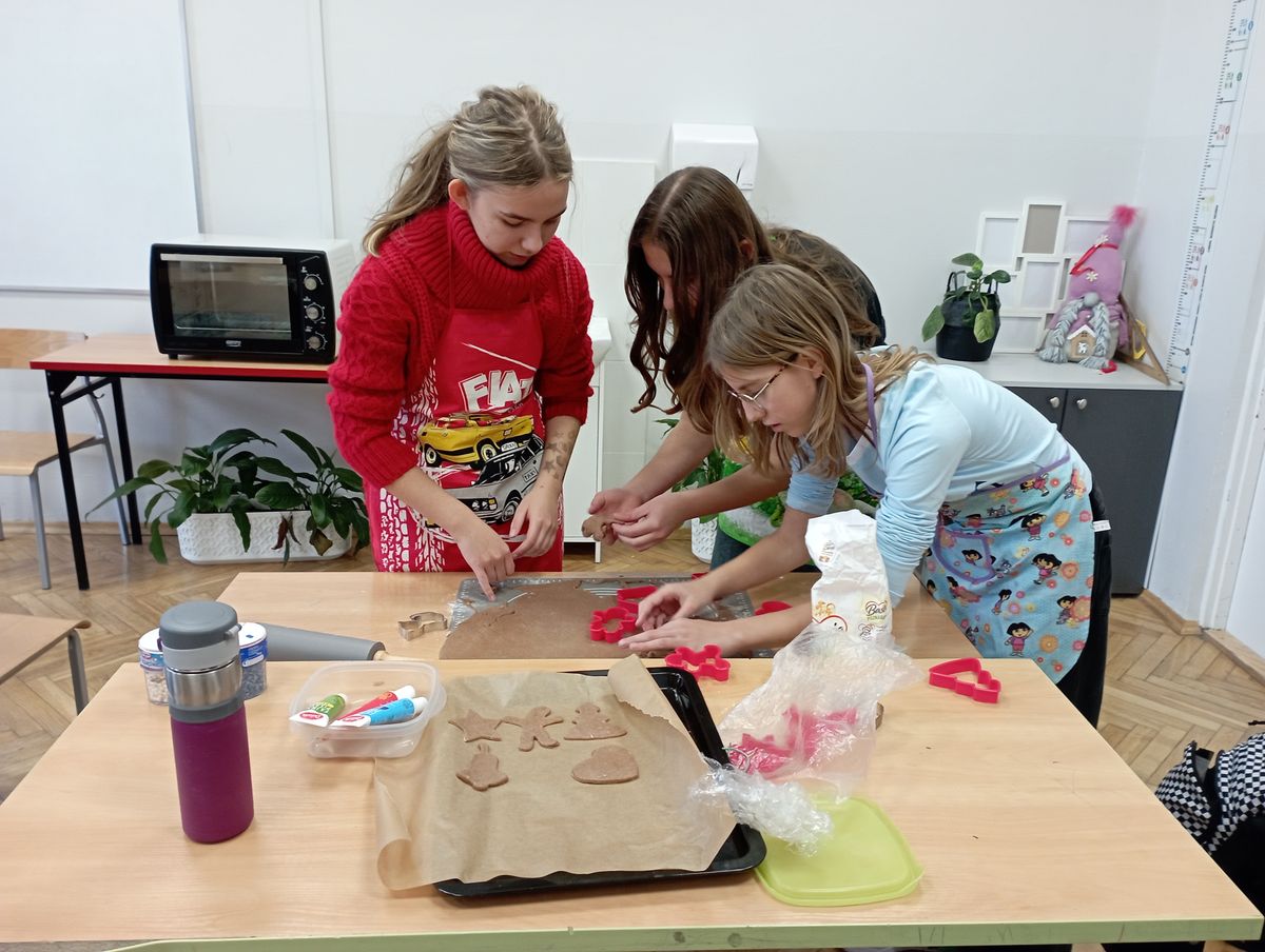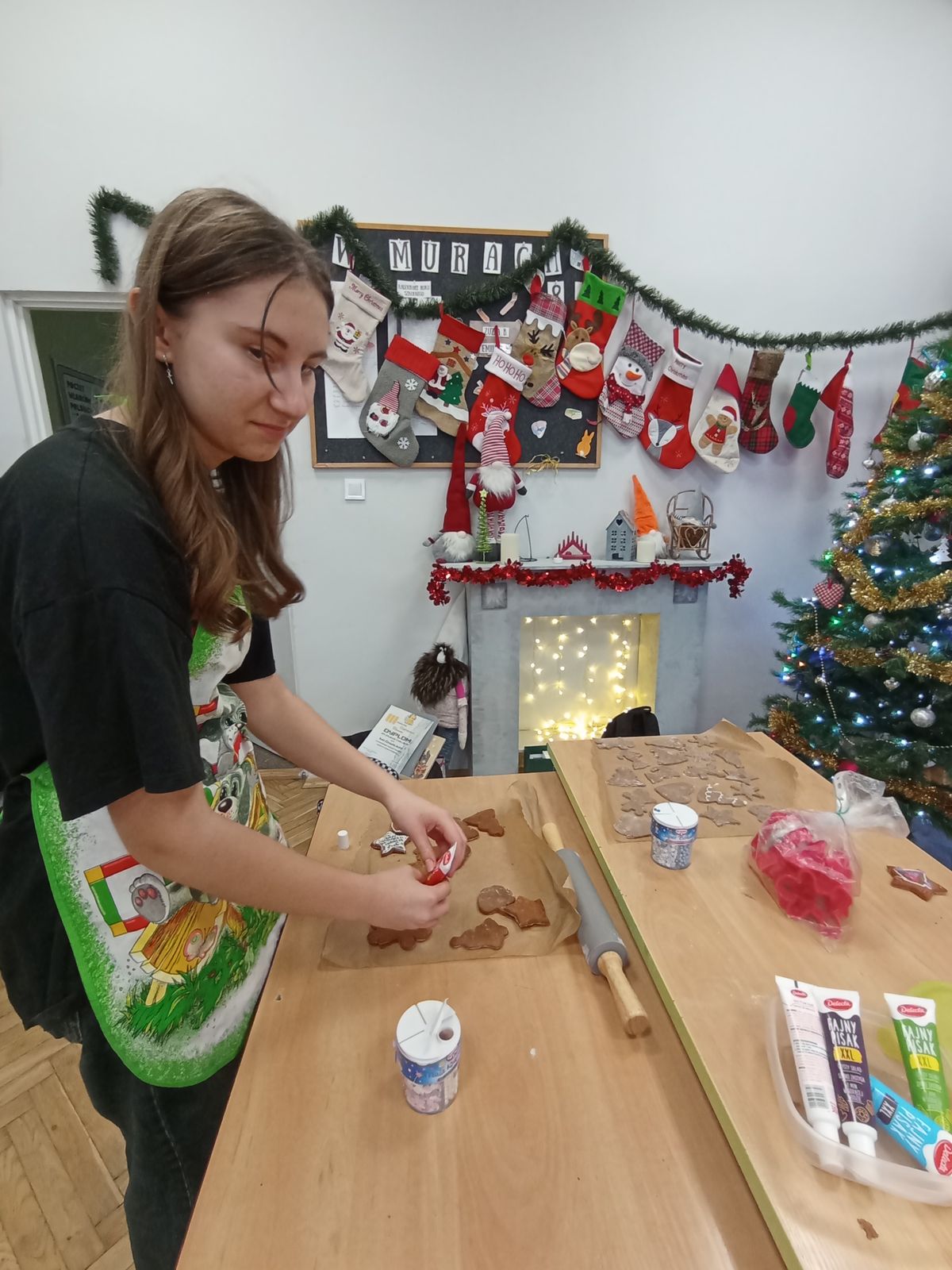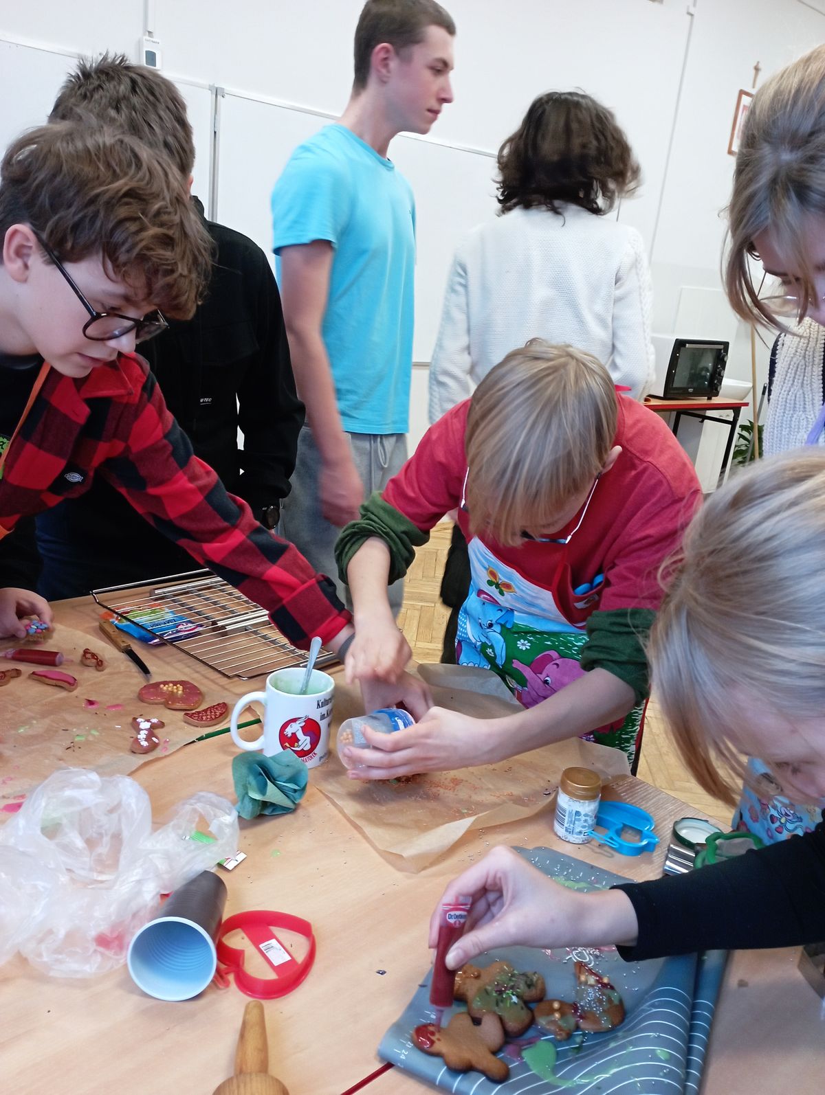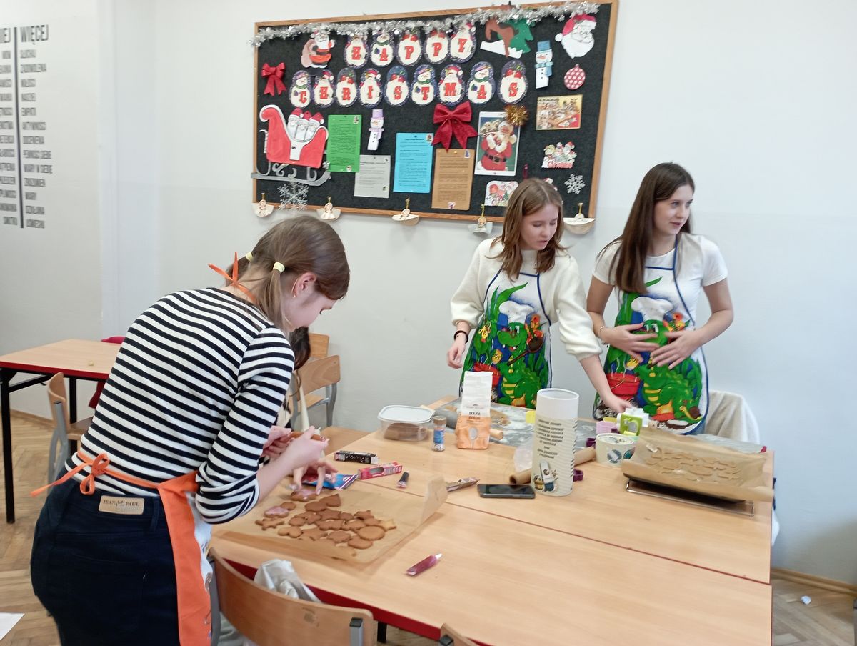 Fantastyczne zaangażowanie, praca grupowa, śmiech, rozmowy i muzyka świąteczna towarzyszyła uczniom klasy 8 podczas wypiekania pierników. Słodkości były smaczne, kolorowe i pięknie ozdobione. Sprzątanie poszło szybko i sprawnie dzięki naszemu Beniowi, który nad wszystkim czuwał 🙂