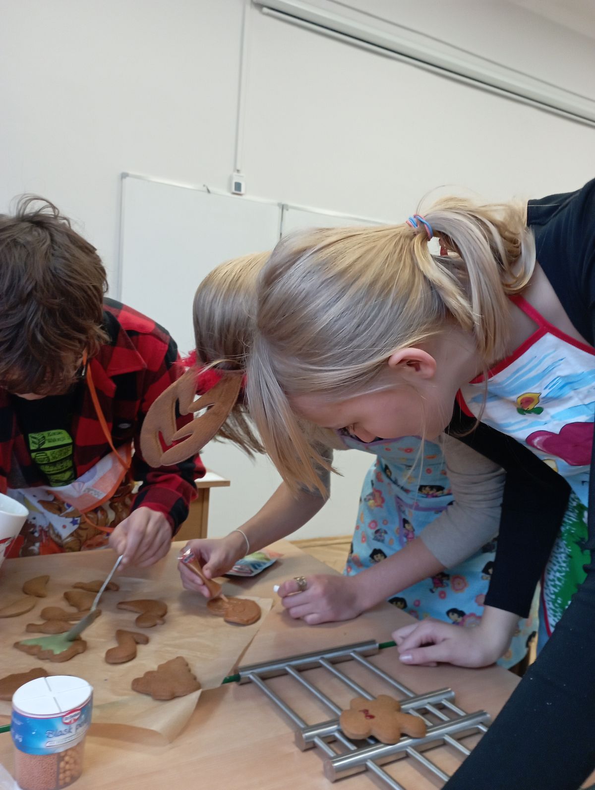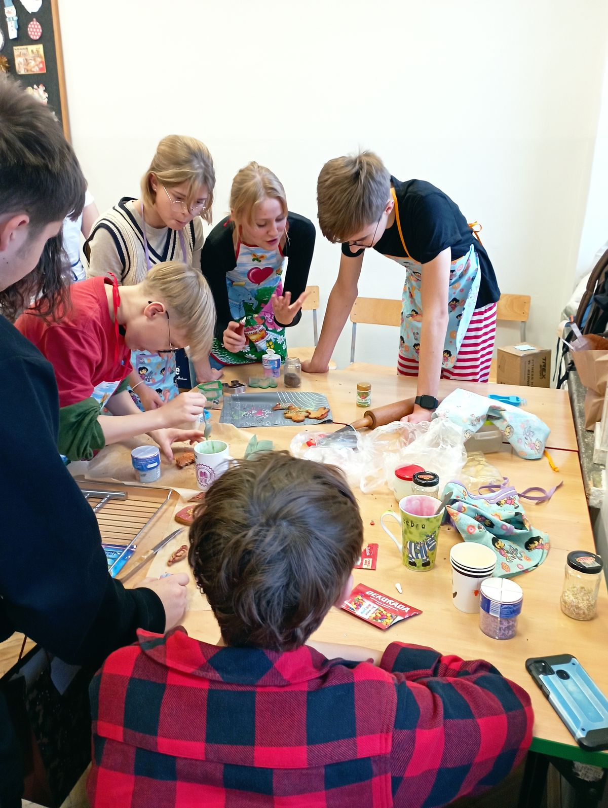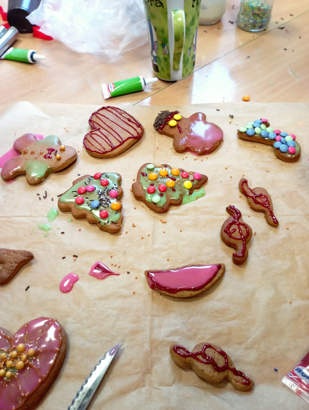 Fantastyczne zaangażowanie, praca grupowa, śmiech, rozmowy i muzyka świąteczna towarzyszyła uczniom klasy 8 podczas wypiekania pierników. Słodkości były smaczne, kolorowe i pięknie ozdobione. Sprzątanie poszło szybko i sprawnie dzięki naszemu Beniowi, który nad wszystkim czuwał 🙂