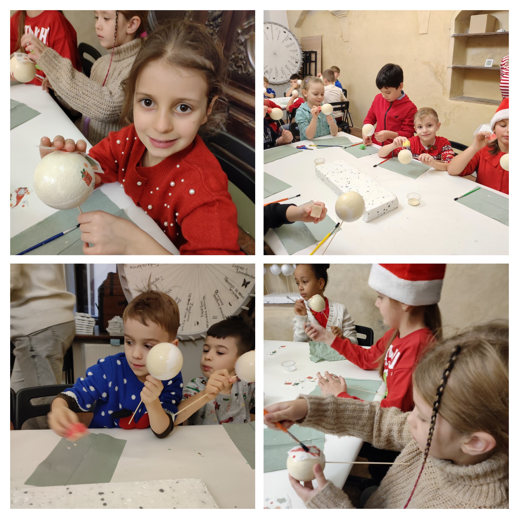 Uczniowie klas pierwszych wzięli udział w mikołajkowych warsztatach w Muzeum Historii Miasta Przemyśla, gdzie własnoręcznie wykonywali bombki metodą decoupage. Dzieci z wielkim entuzjazmem ozdabiały swoje świąteczne dekoracje, które teraz będą piękną ozdobą na choinkach.