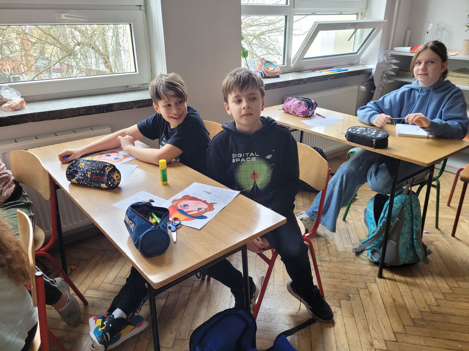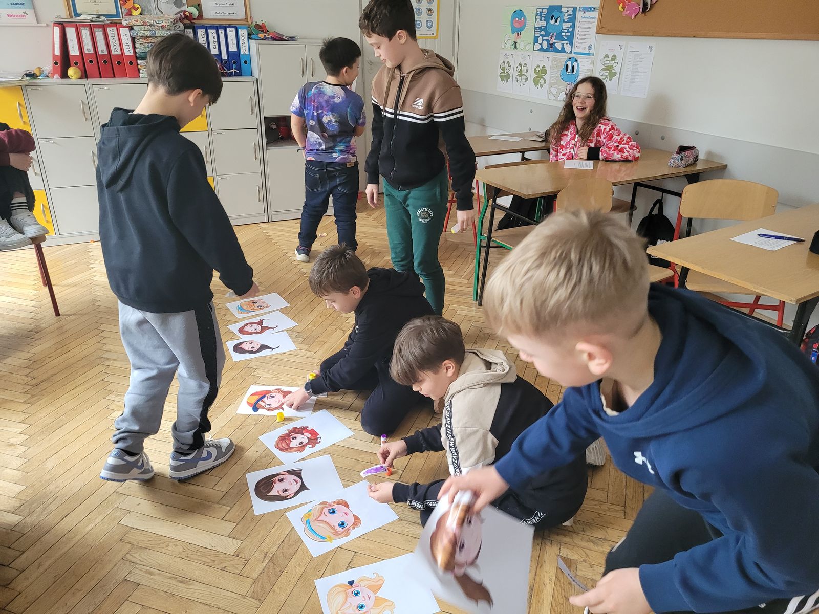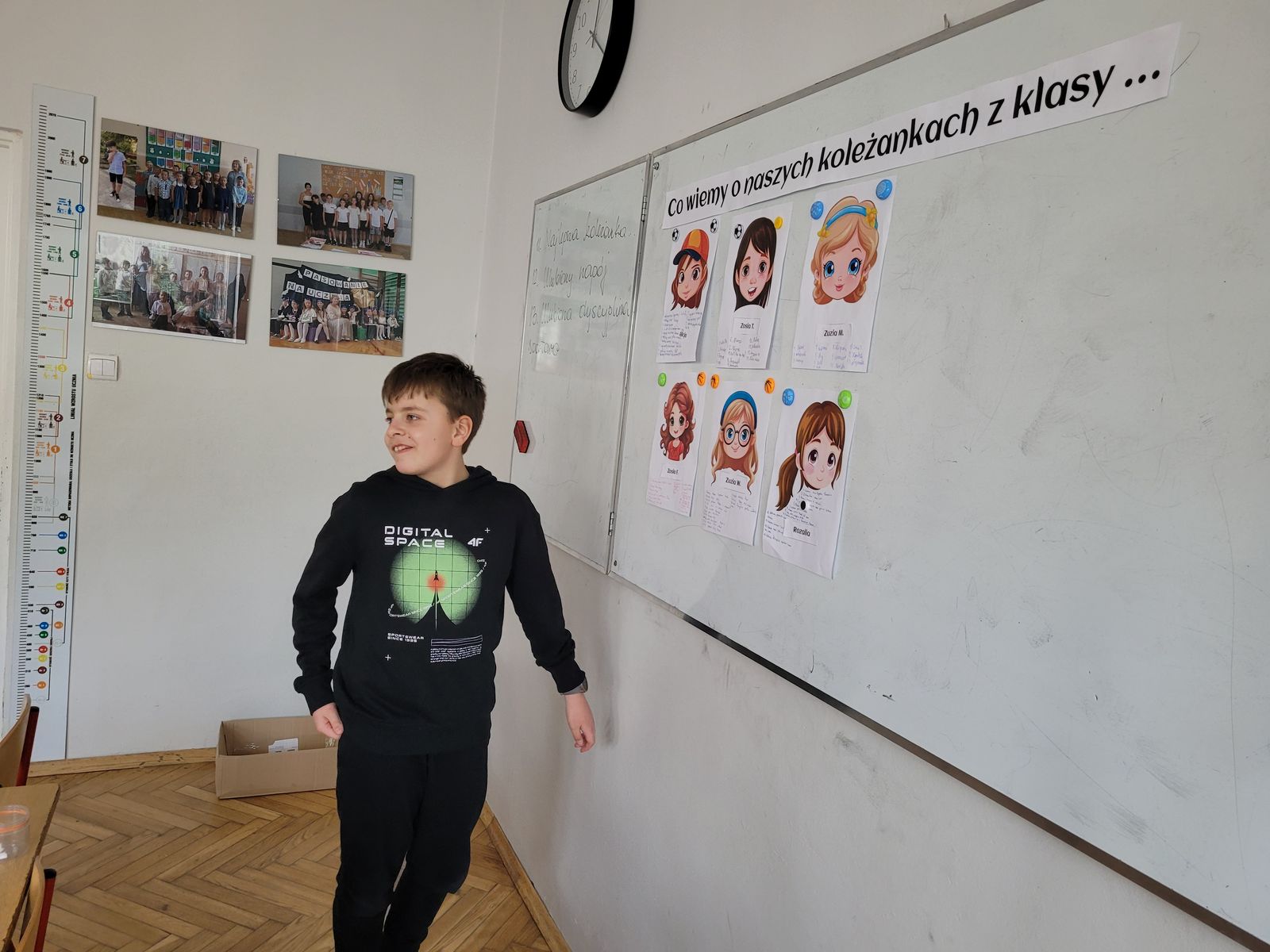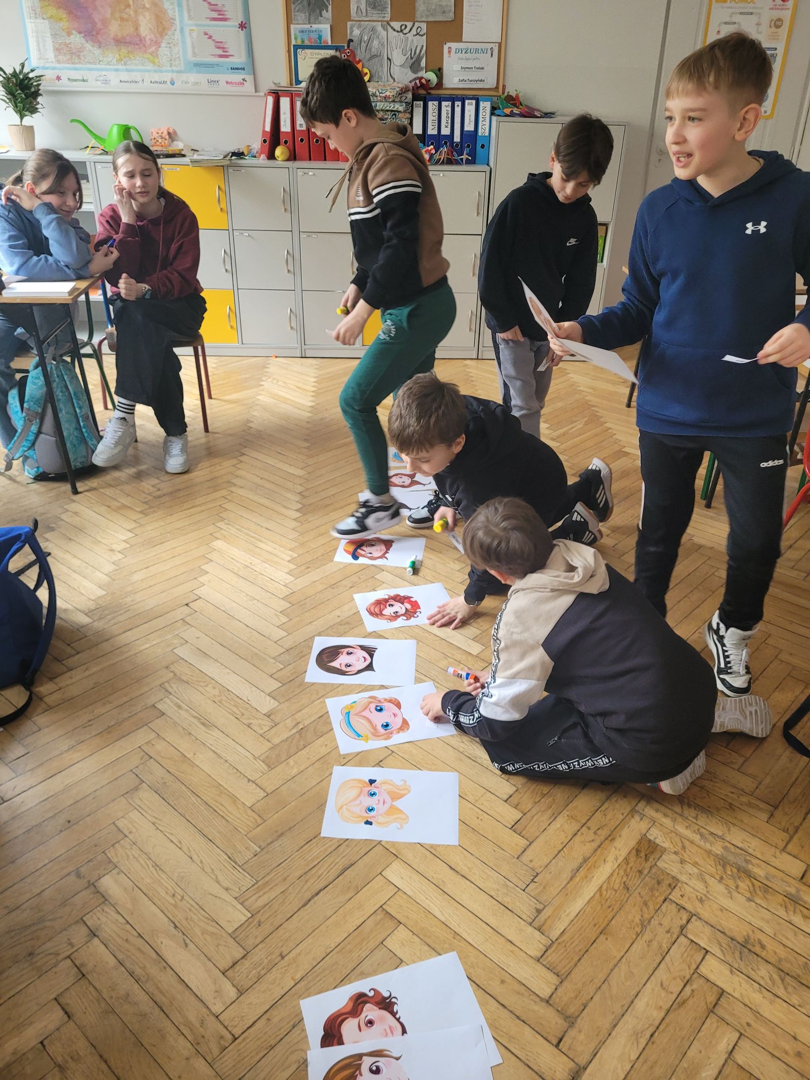 Z okazji Dnia Kobiet chłopcy z klasy 4b przygotowali dla koleżanek praktyczne i słodkie upominki. Chcieli również pokazać jak dobrze znają swoje dziewczyny. Losowali imię, następnie dobierali odpowiedni portret i odpowiadali na szereg pytań. Próbowali odgadnąć, np. upodobania, zainteresowania, potrawy, ulubione zwierzęta a nawet wymarzone miejsca swoich koleżanek. Różnie było z tą znajomością, jedno jest pewne, wszyscy – w tym szczególnym dla dziewczynek dniu- świetnie się bawili.