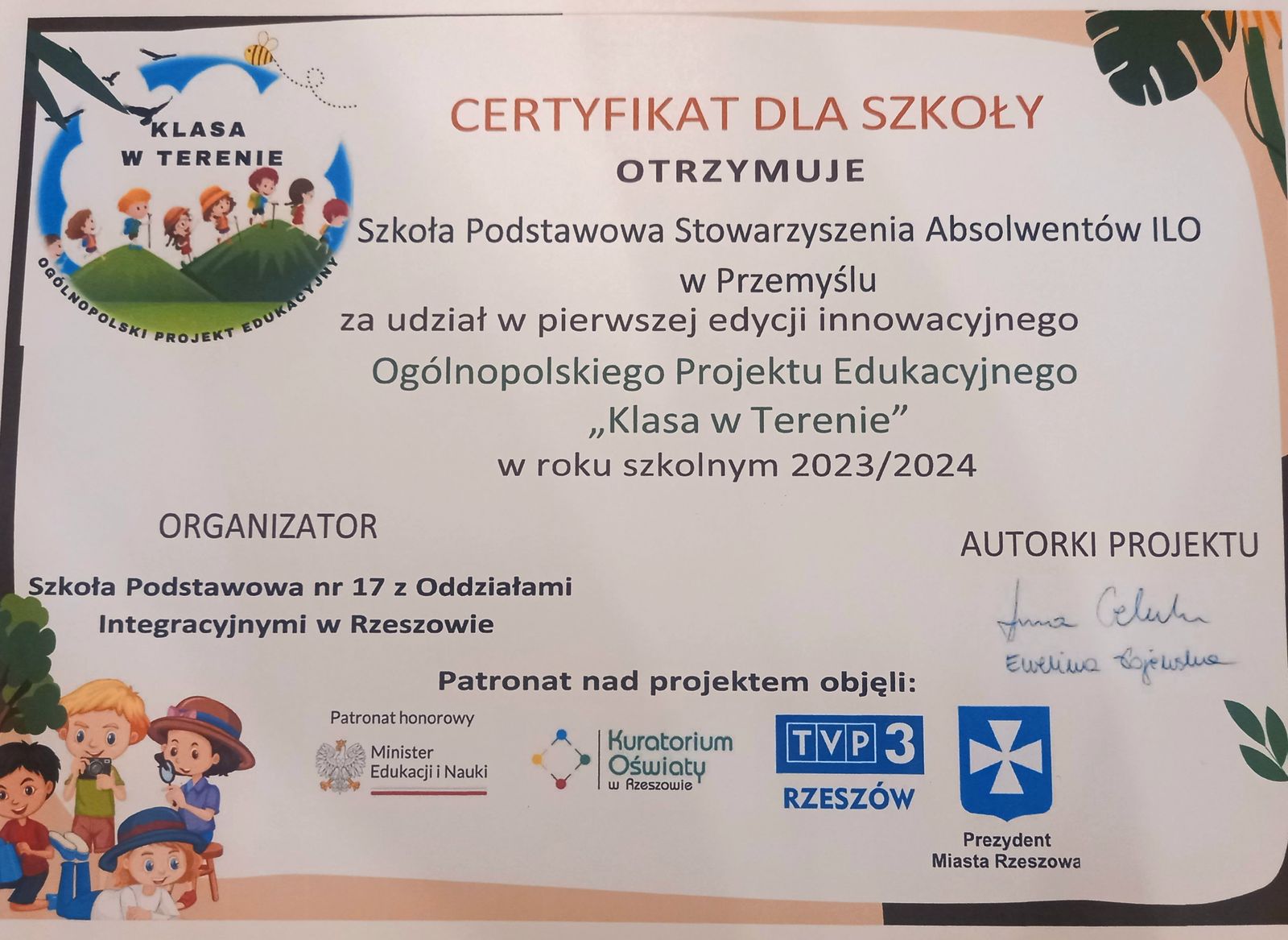 W roku szkolnym 2023/2024 klasa 2b wzięła udział w pierwszej edycji innowacyjnego Ogólnopolskiego Projektu Edukacyjnego ,,Klasa w terenie”.