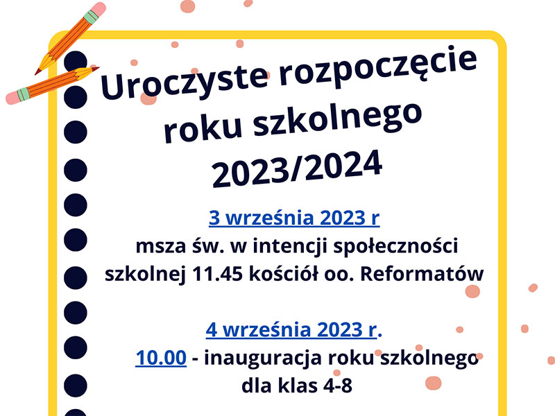10.00 – Uroczyste spotkanie inauguracyjne dla uczniów klas 4-8